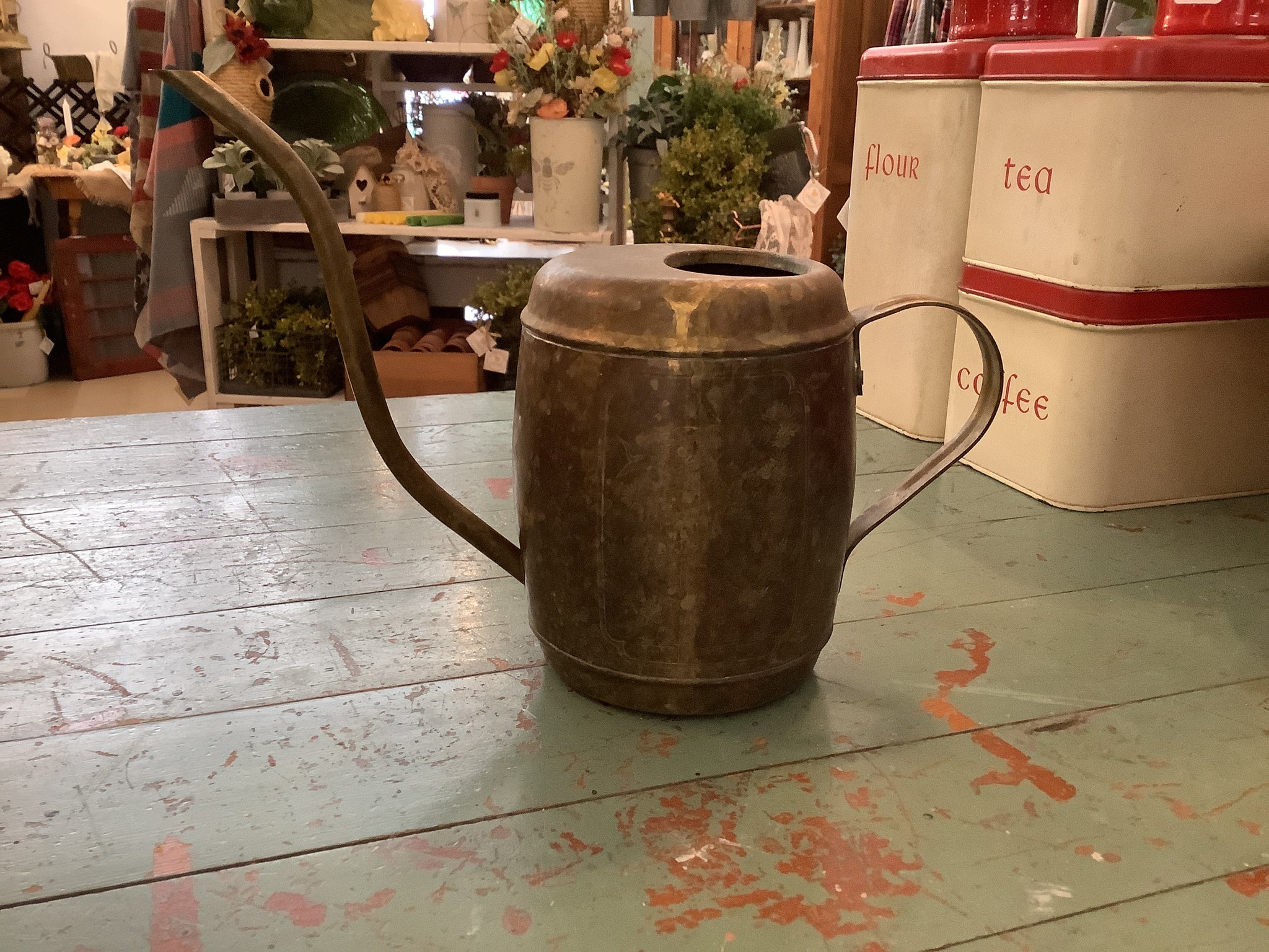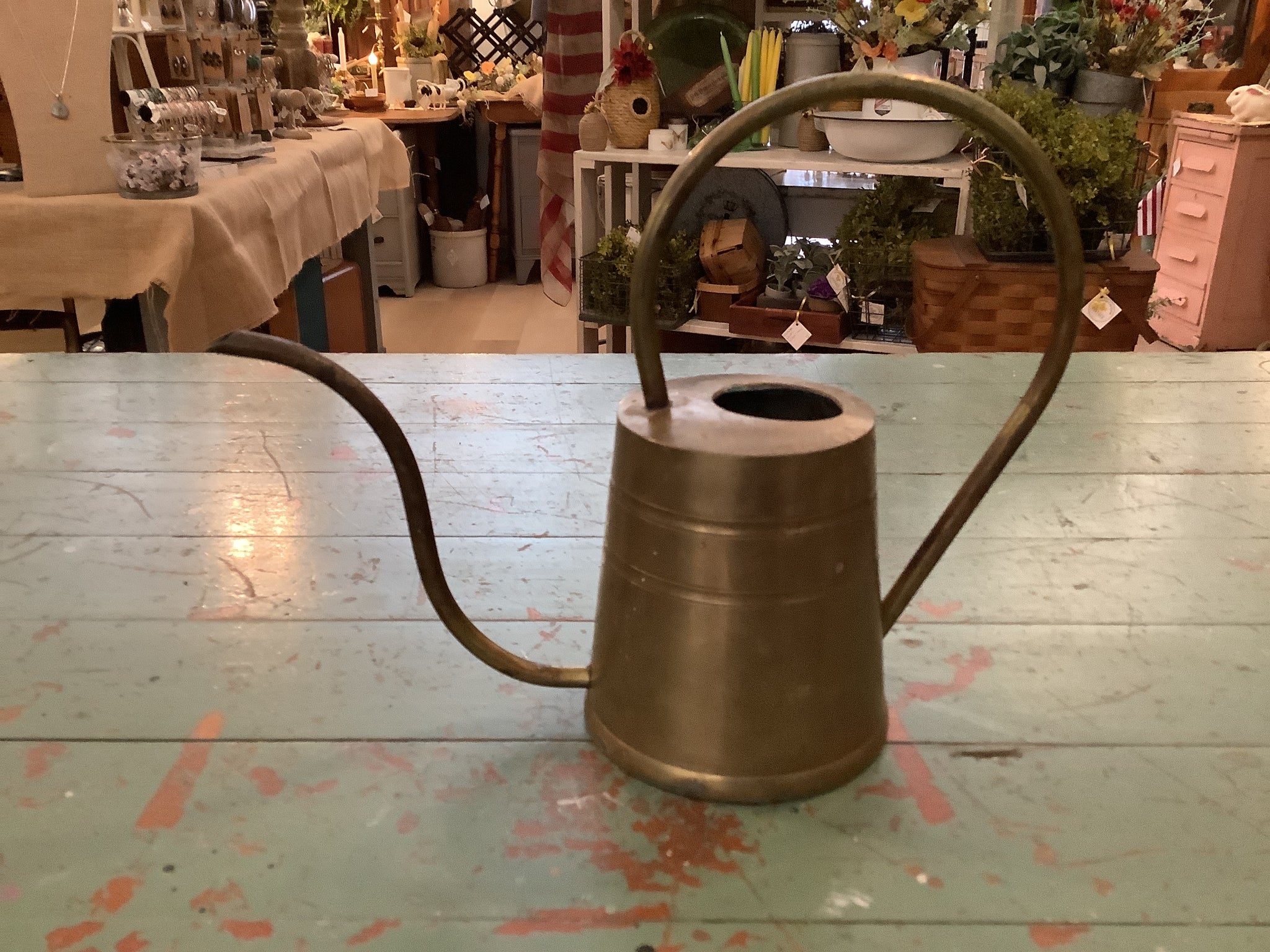 Solid brass watering can made in India. 10 3/4” at widest point. 8 1/2” tall.