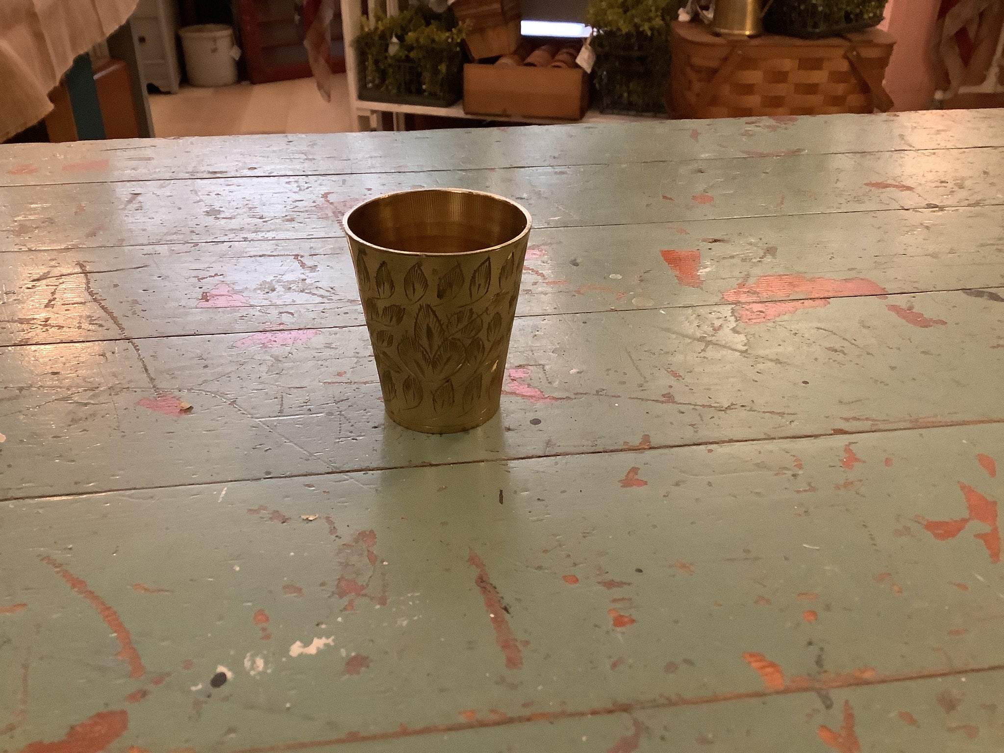 Weathered brass finish planter. Not vintage. 4” tall, 5 3/4” diameter.