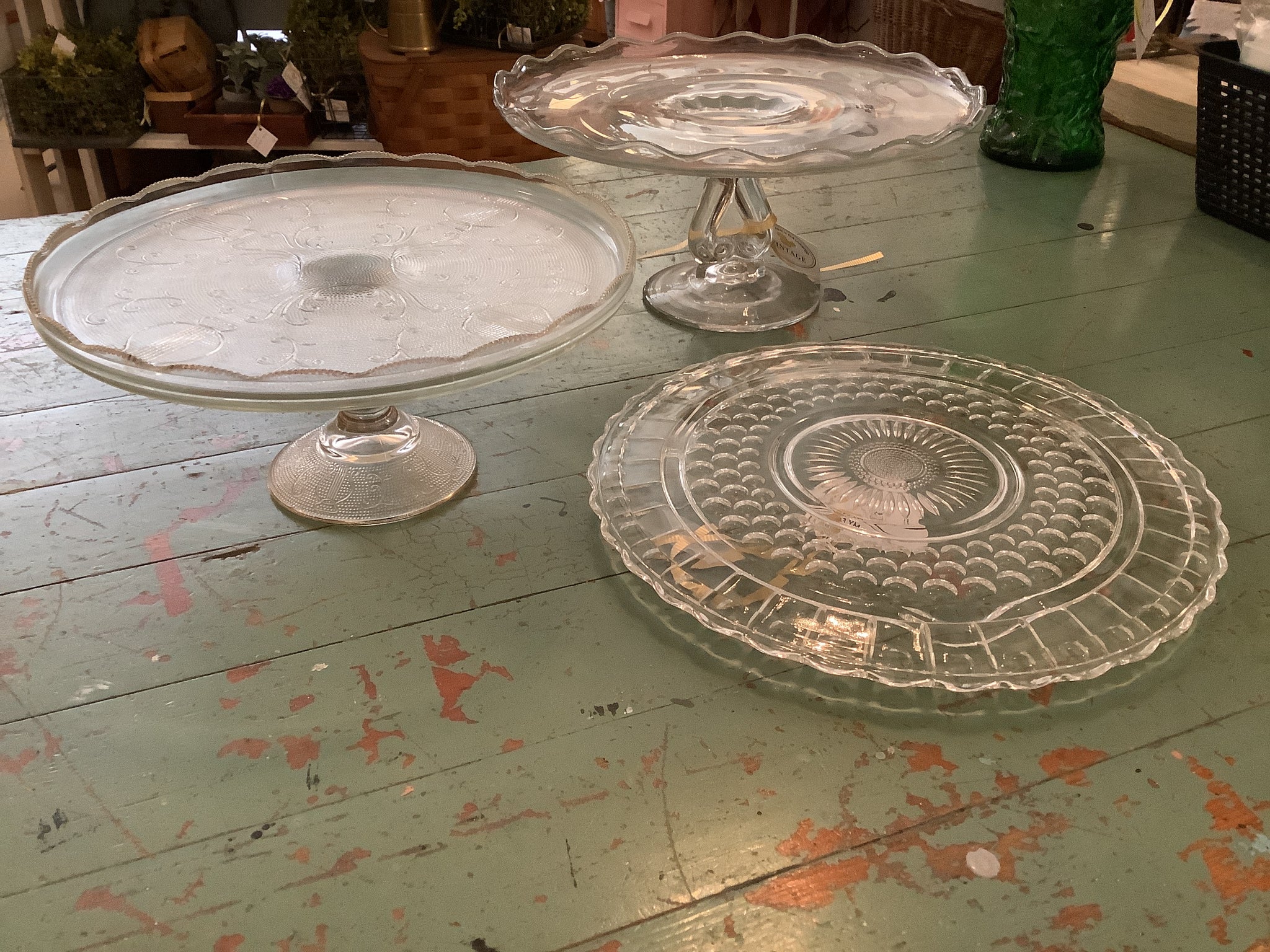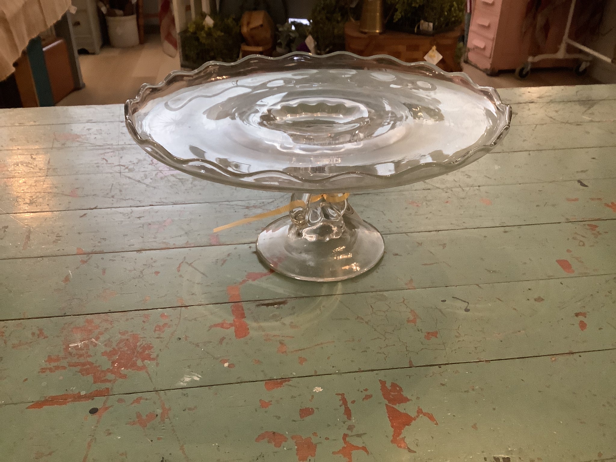 Clear glass footed stand by Viking. 11.5”d, 5.5”t.