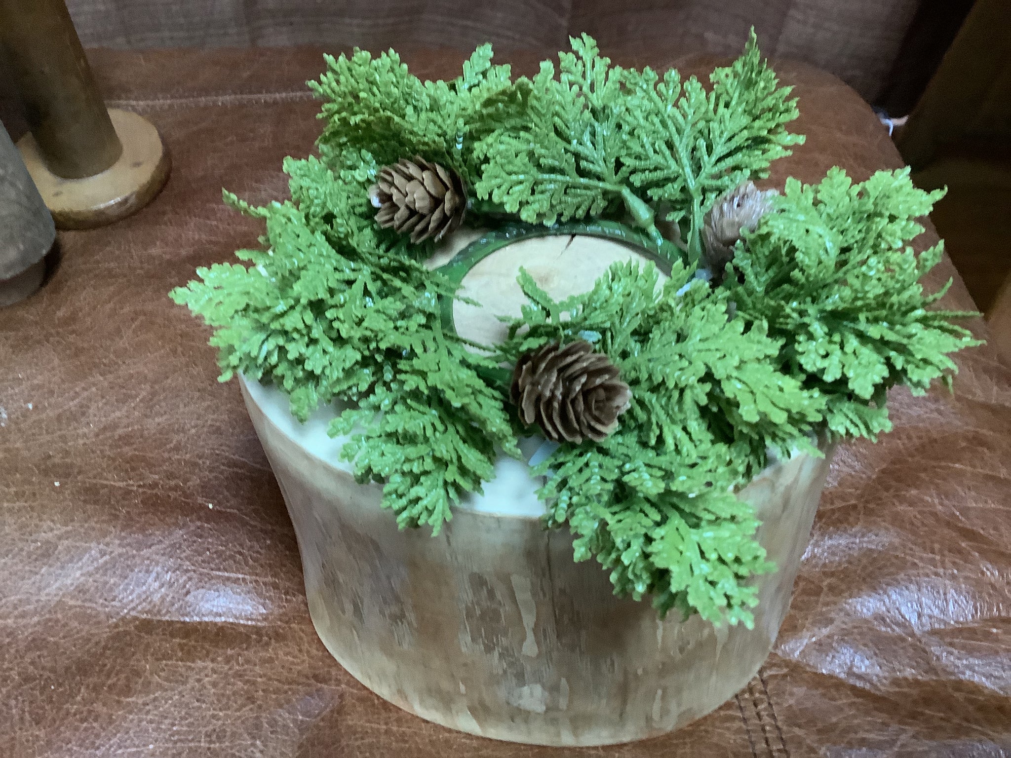 These beautiful, real feel cypress greenery candle rings will be the stars of your winter displays! With. 2.5” inner ring, they will accommodate both taper and small pillar candle styles. They also look wonderful as a stand alone wreath on a cabinet door. Faux pine cone accents.
