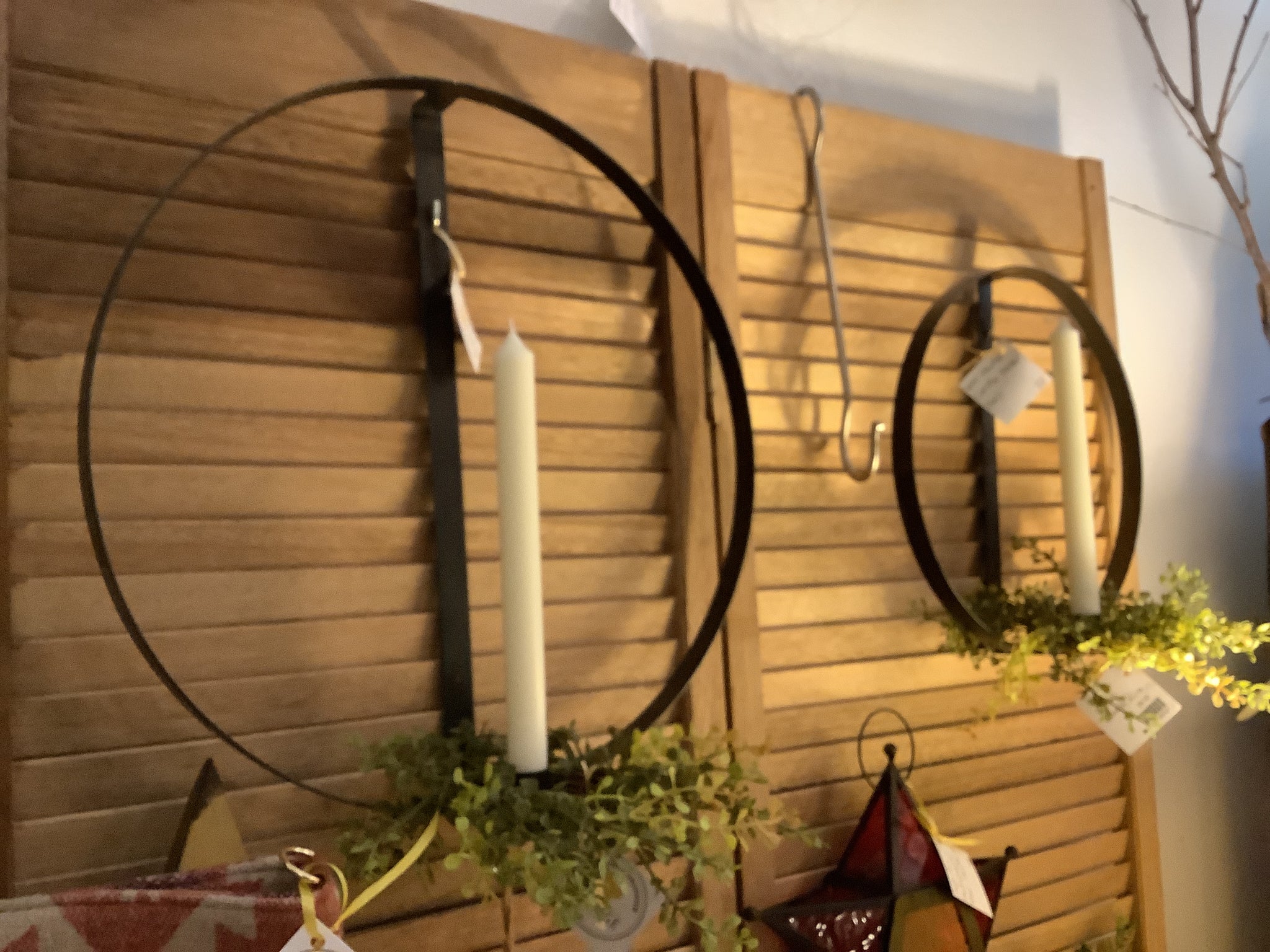 Round metal wall mounted candle holders taper holder. 16” diameter, and 12” diameter.