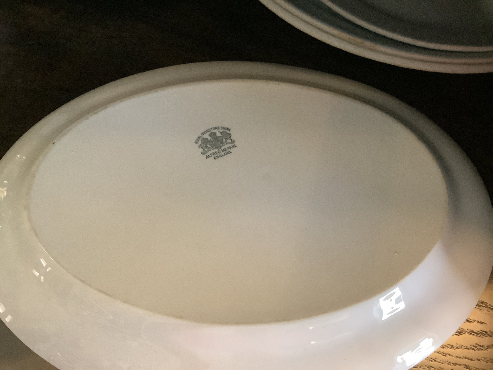Large heavy white platter, Alfred Meakin. 15” x 10 3/4”. Surface scratches.