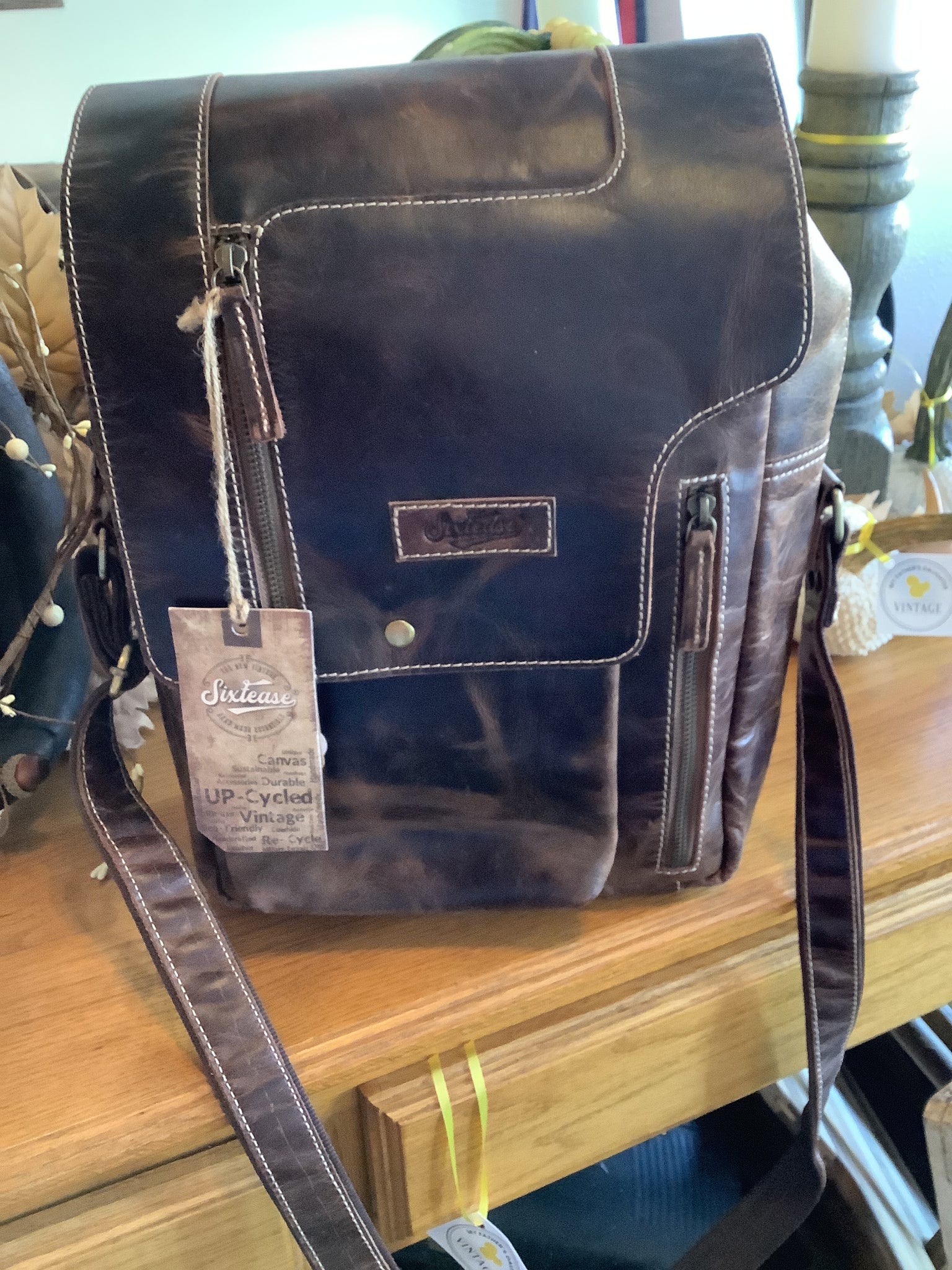 Sixtease Bliss Shoulder Bag. Urban sophistication meets natural elegance for effortless style! Slip pocket I front with snap closure, and zip pocket at back. Main compartment brass zip closure, with 1 zip pocket and 2 slip pockets. Antique finish metal fittings. 11” H x 13” W x 4” D, with 52” adjustable leather strap.