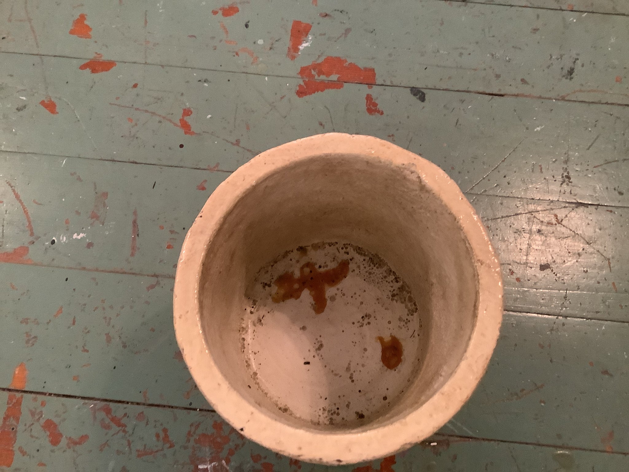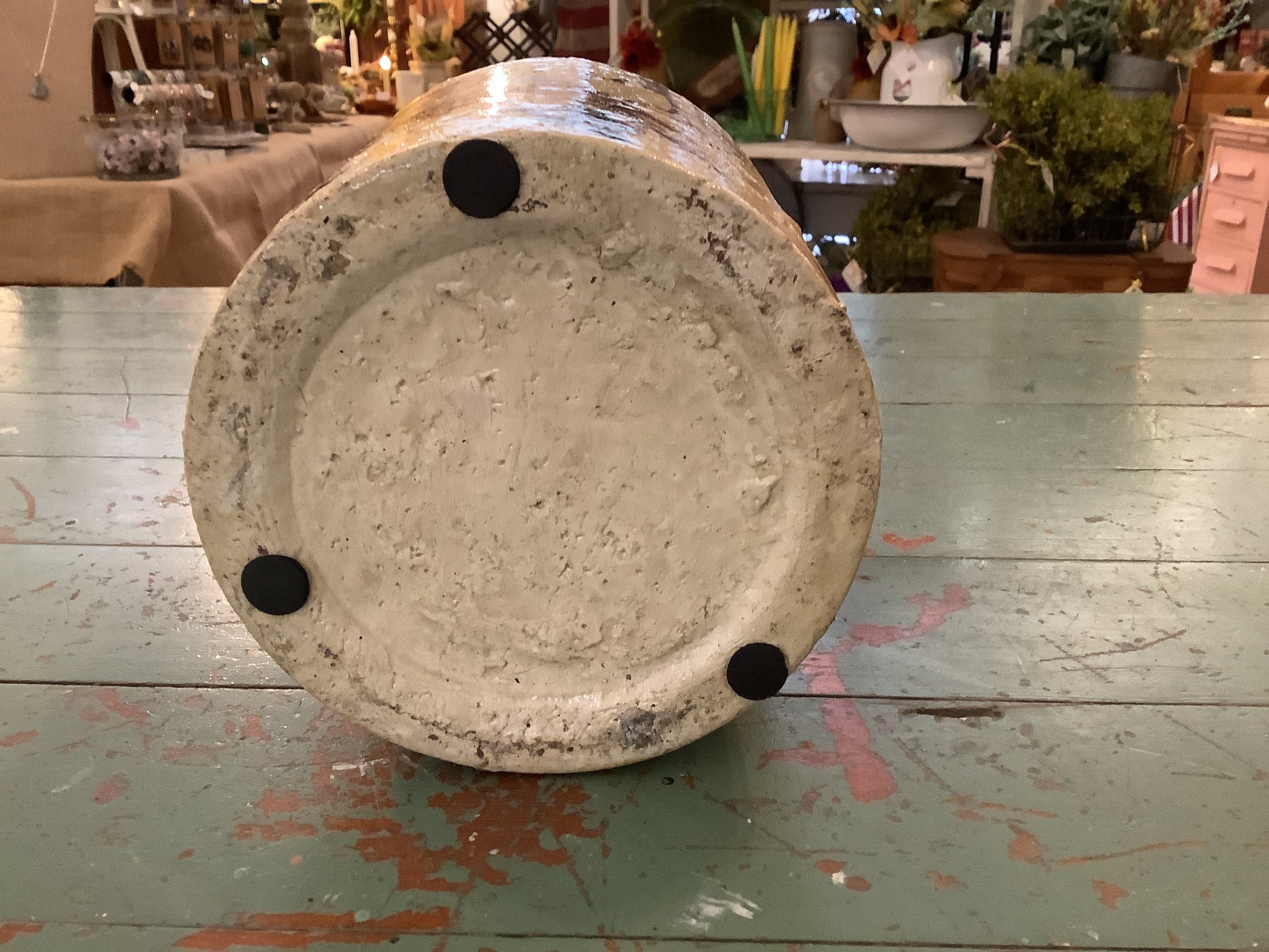 Pretty footed ceramic planter. Oval shape, faux stone appearance to exterior. 12” x 7” x 7”