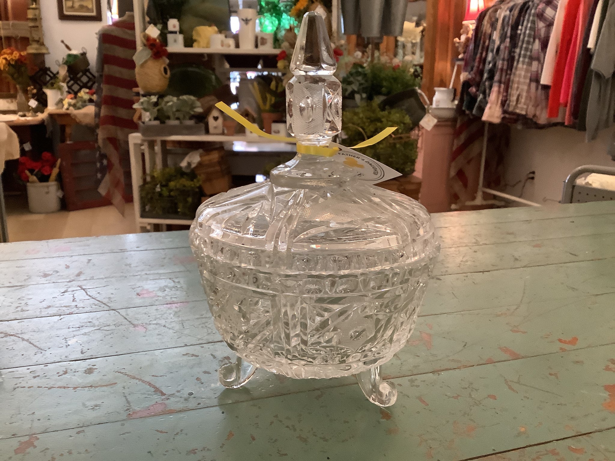 Assortment of vintage cut and pressed glass items. Various styles and sizes.