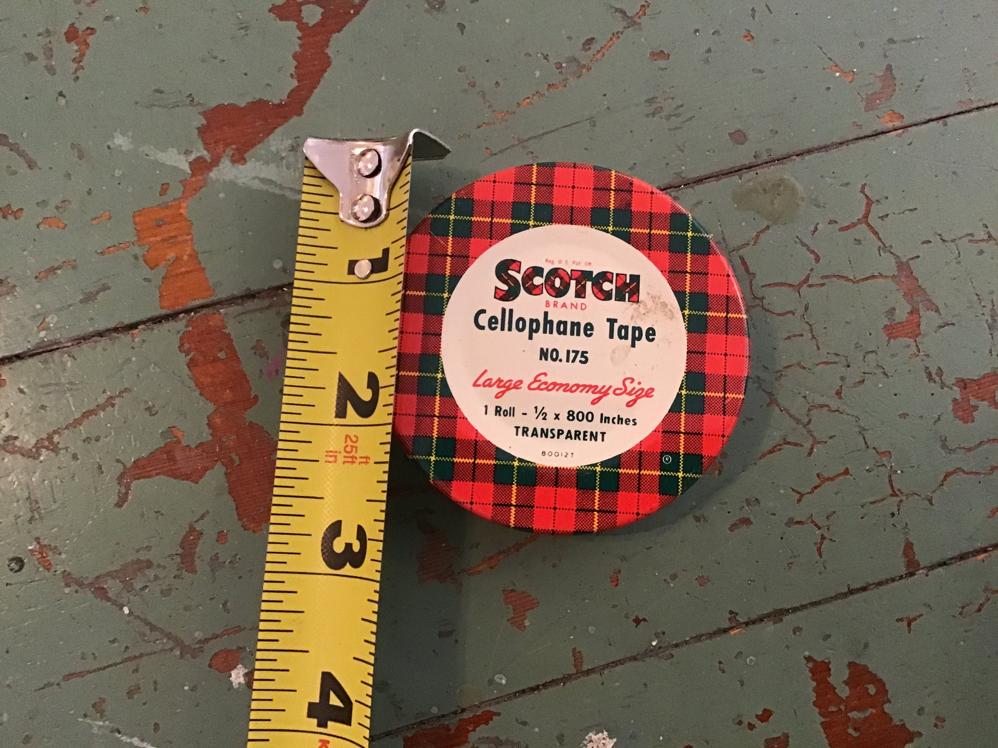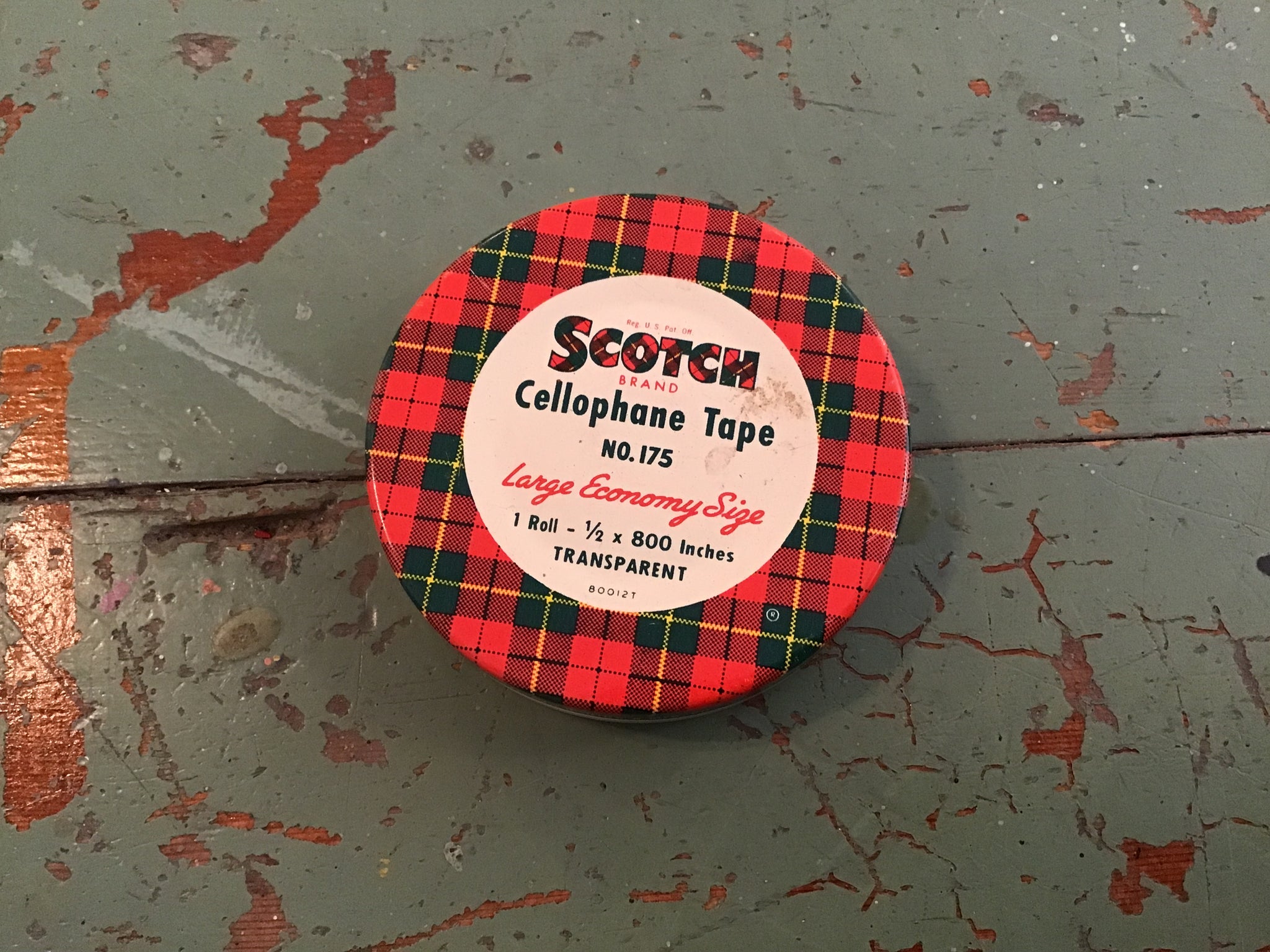 Scotch tape tin. Great seasonal decor. Add to a display or wreath for interest. Assorted sizes.