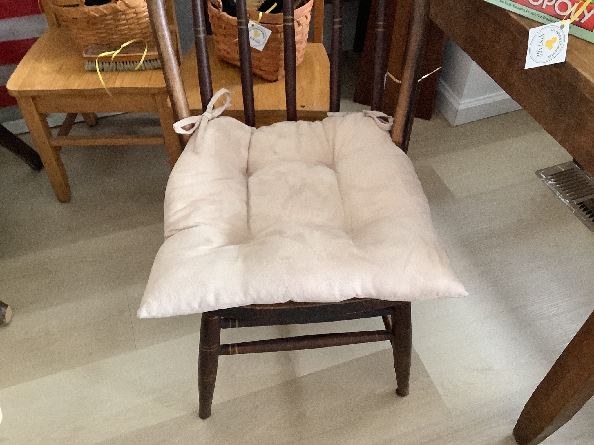 Tan seat cushions with ties to secure to chair back. Set of 2.