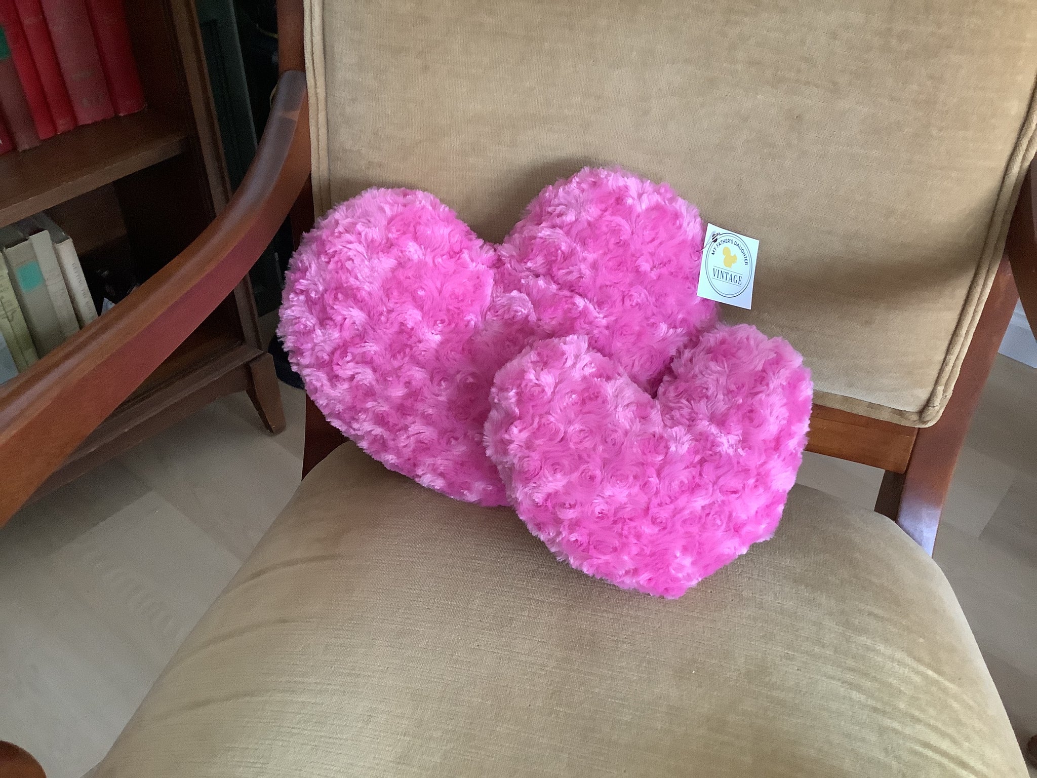 Heart shaped pillow from new fuzzy pink fabric. Two sizes to choose from.
