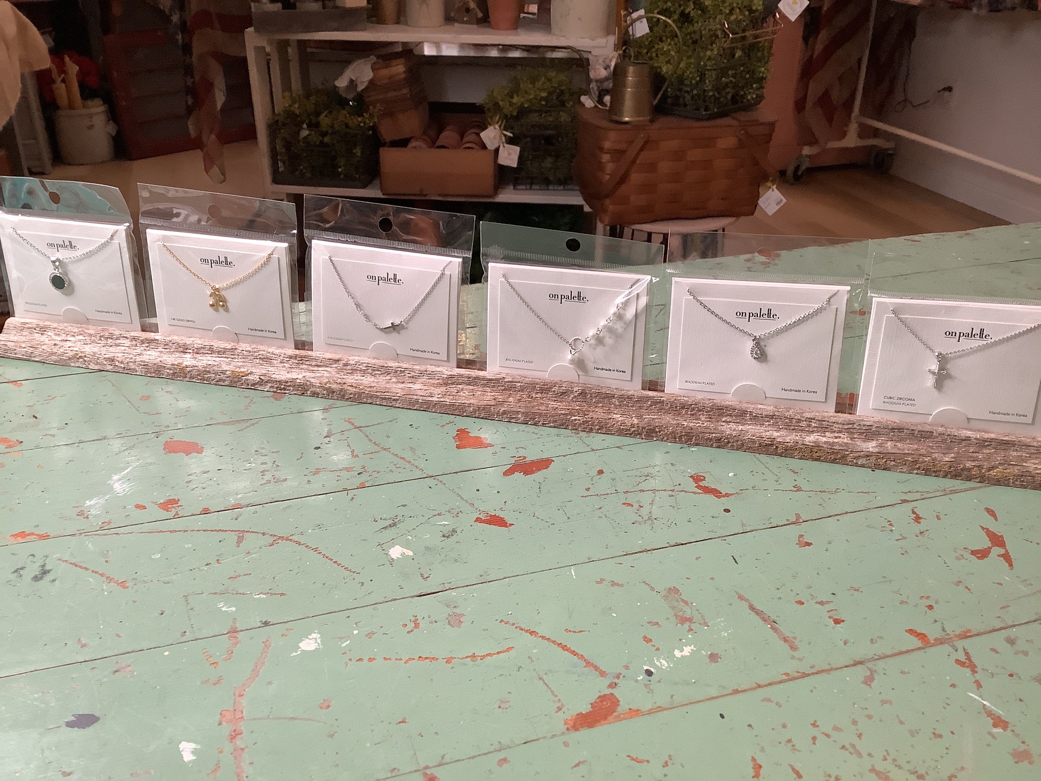 Various shorter length necklaces with assorted pendants or real stones. Some double or triple chain styles. All lead and nickel free. *not all styles pictured