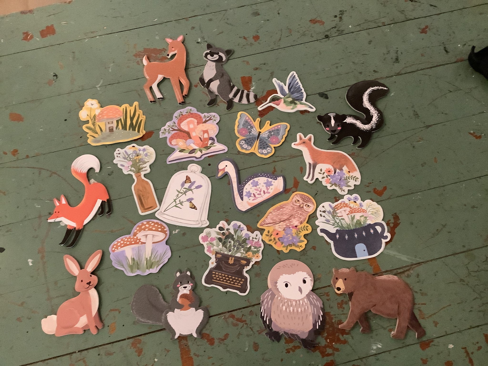 Variety of stickers, wildlife, Christian, state and lake themed.