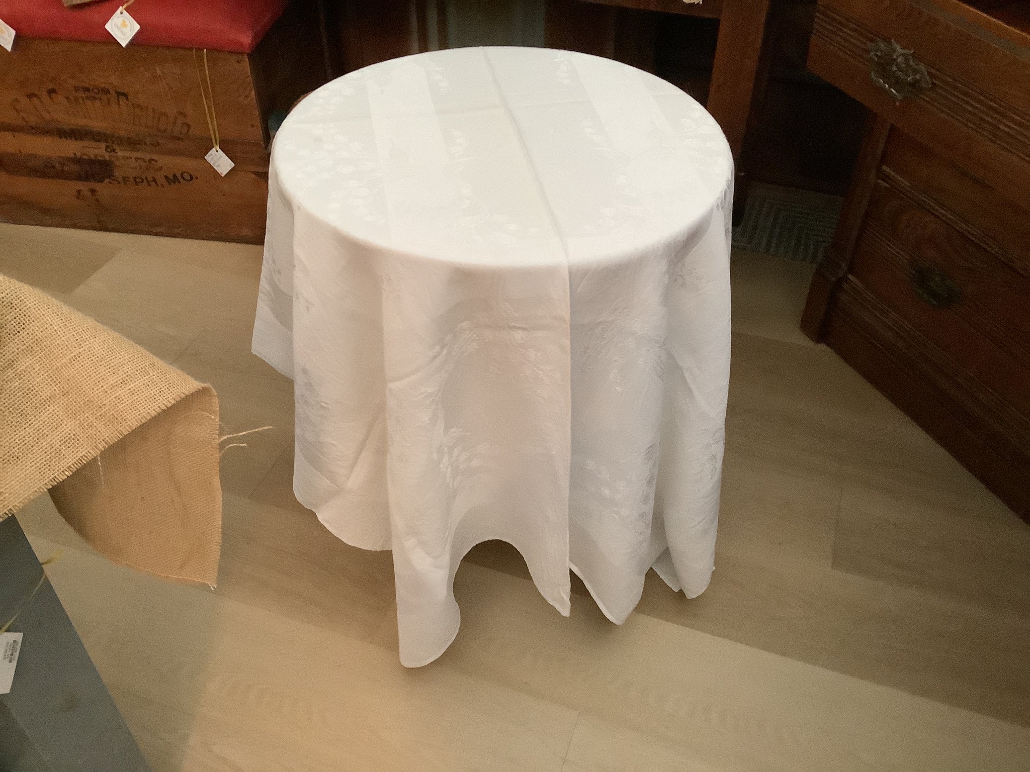 Beautiful vintage tablecloths in various fabrics, colors and sizes.