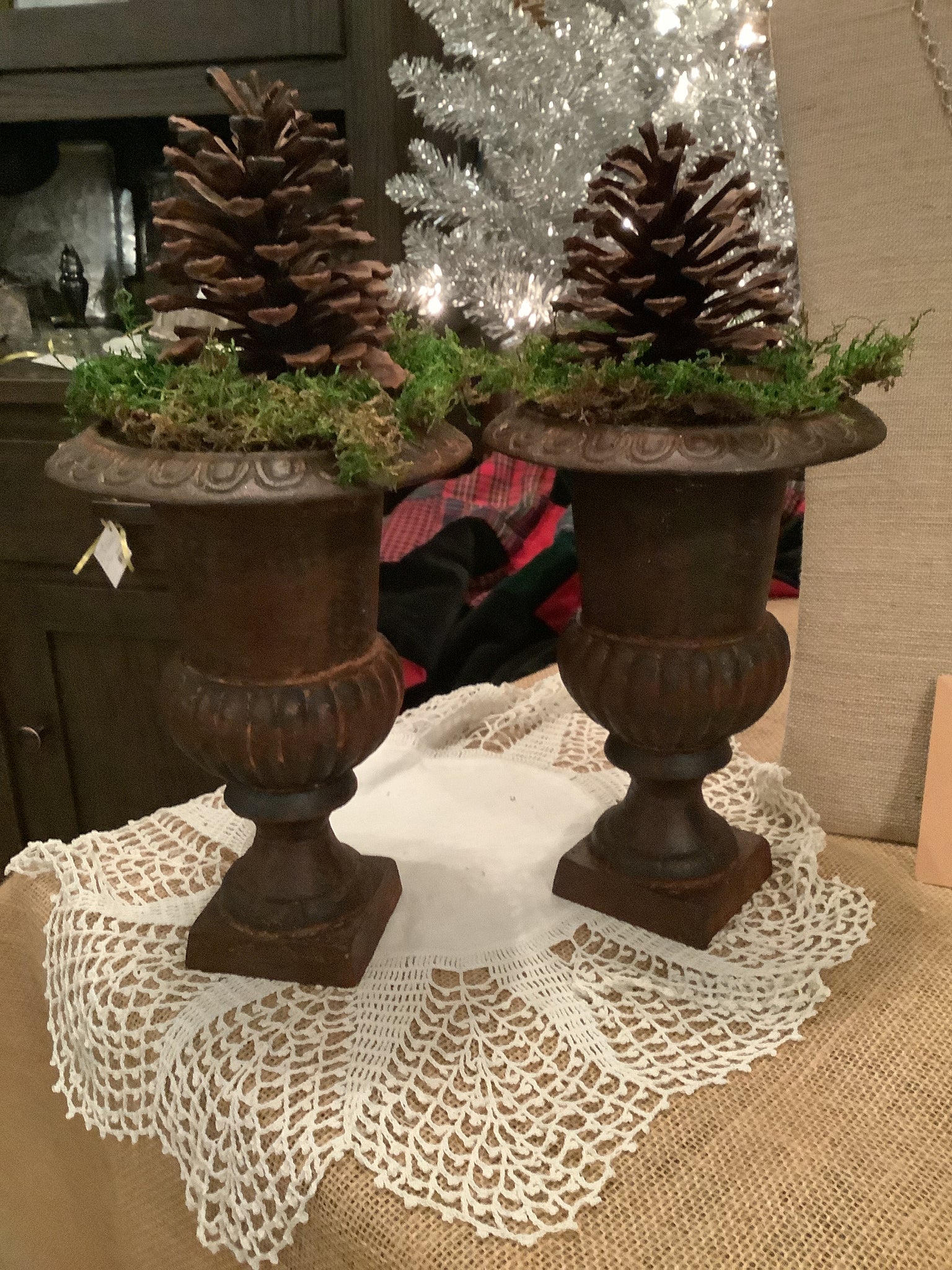 Pottery urn. 7.5” tall, 6.5” diameter.
