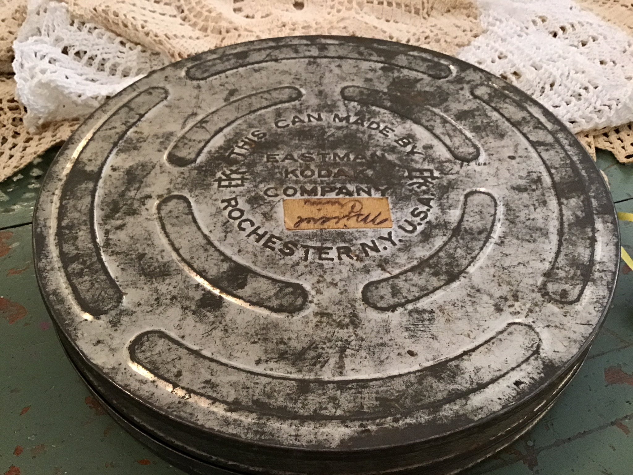 Vintage Kodak film canister. 10.5” diameter. Great riser for display in farmhouse or modern decor.
