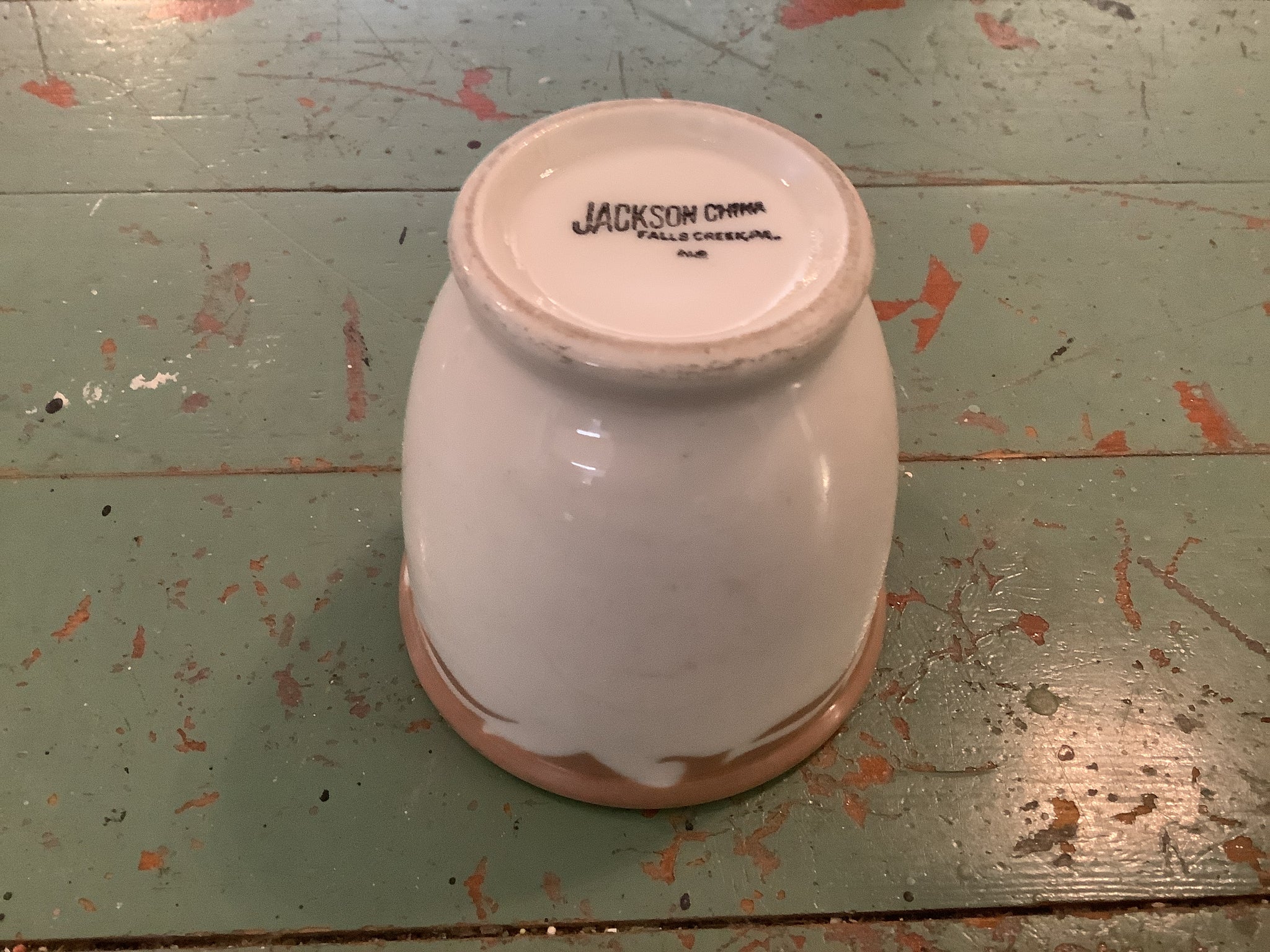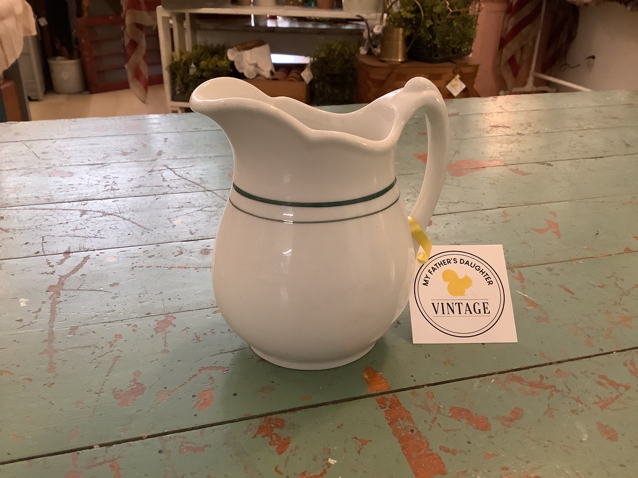 Green/white creamer. Cosmopolitan brand. 3” diameter, 3” tall.