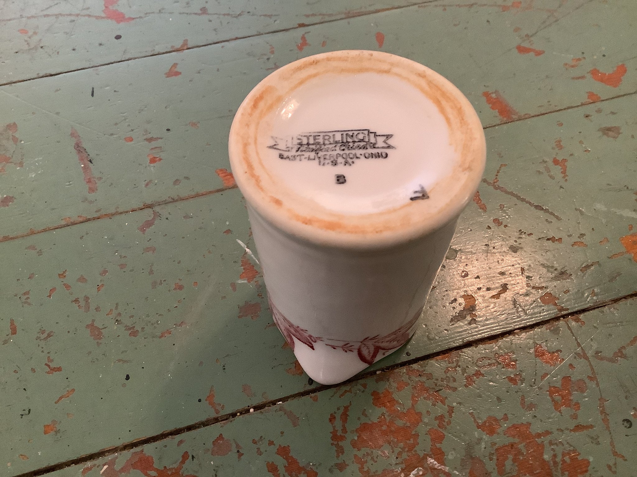 White porcelain creamer, 2.5” tall, 3” diameter. Inter-American brand.