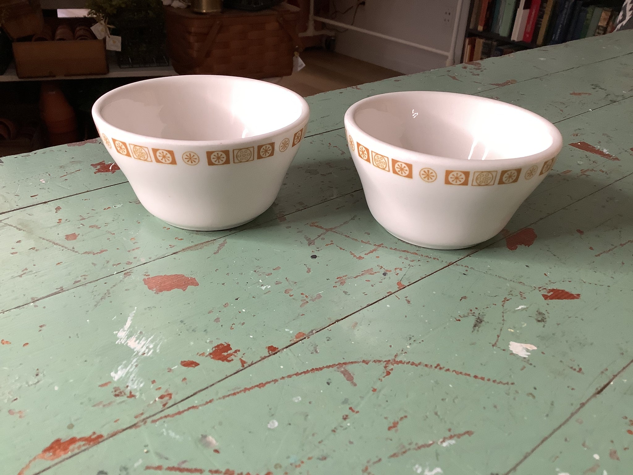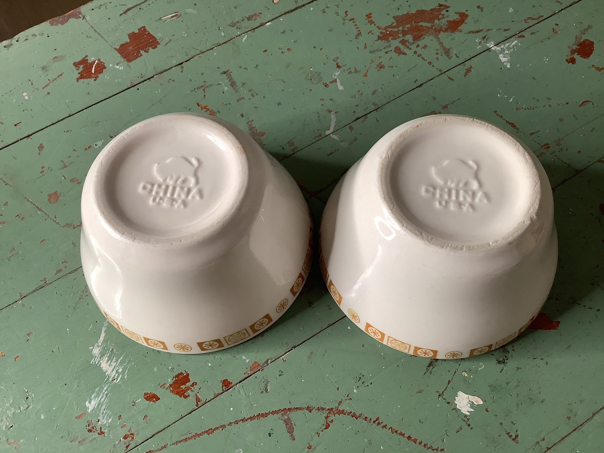 Vintage shenago creamer and bowl set. White with gold design. No chips or cracks. Creamer 2 3/4” tall, 2 3/4” diameter. Bowl 1 1/4” tall, 4 3/4” diameter. Great for displays or to use. Farmhouse, vintage.
