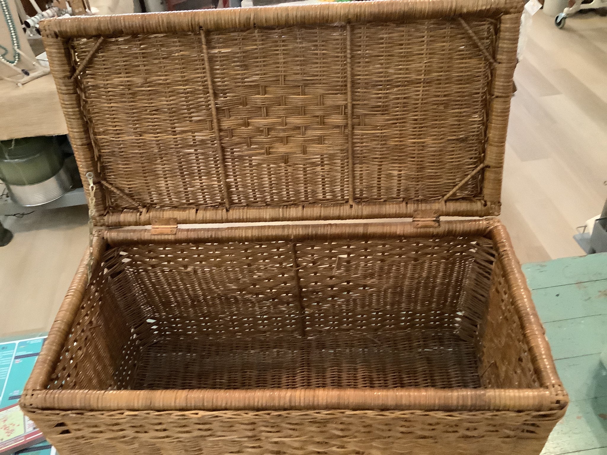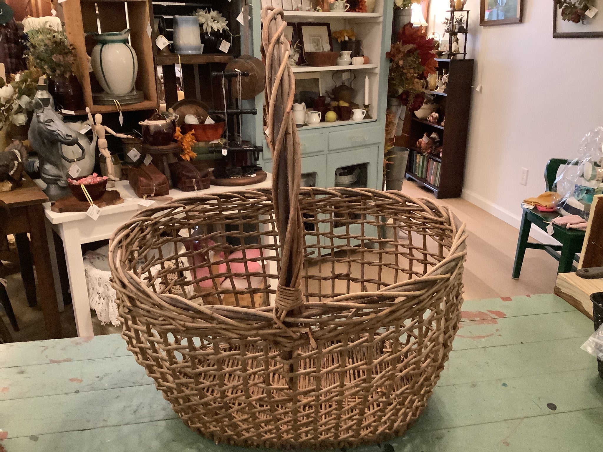Beautiful old laundry basket, missing one handle. Still perfect for storing all kinds of things. Lovely farmhouse look.